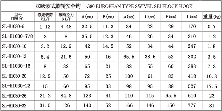80级欧式旋转安全钩