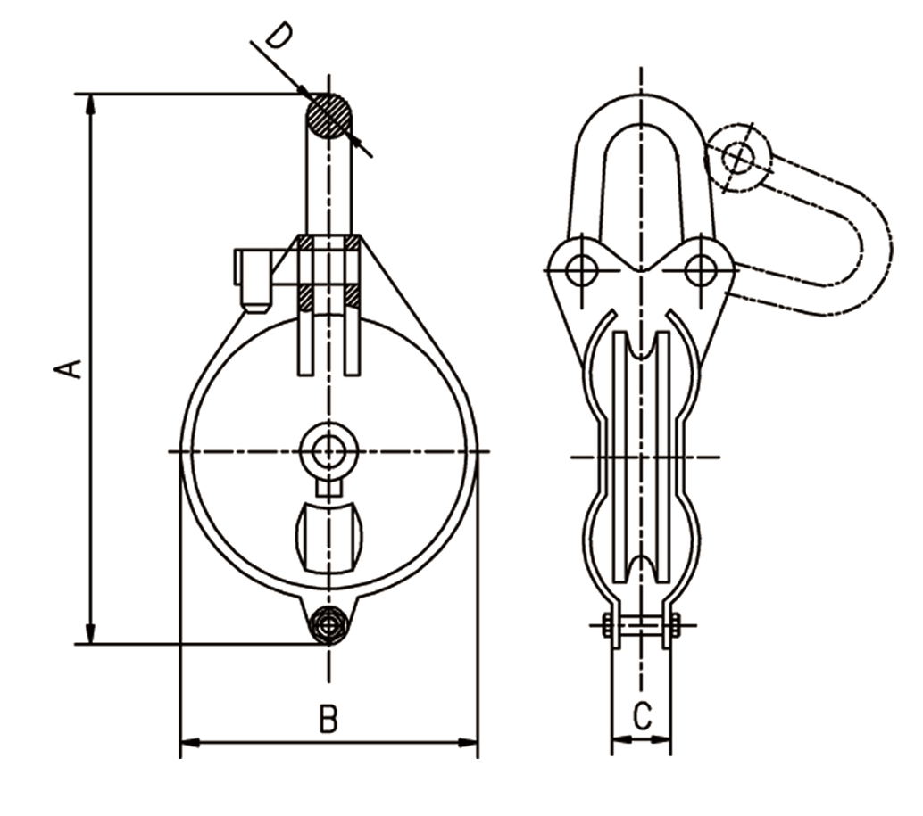 1、吊环为合金钢模锻而成。 2、开口设计,方便挂绳。 3、侧板加厚,保障使用强度。