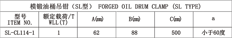 1、用途:适用于油桶吊装,更适用于油桶的竖直吊装。 2、采用低碳优质合金钢锻造。 3、载荷范围:1吨。 4、链条规格:6*18mm。 5、以单只试验为额定载荷,吊装作业时单只使用。 6、